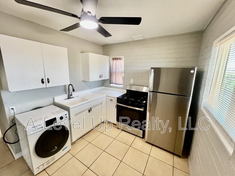 Super cute single-level unit offering 1 bedroom and 1 bathroom, along with a generous kitchen that has a brand new stainless steel gas stove and fridge. Washer/dryer combo unit setup is included. Spacious bedroom featuring two walk-in closets and a pristine bathroom equipped with a tub and shower combination. This property features a completely enclosed backyard, welcomes pets, includes air conditioning, offers private parking, and has been recently renovated with custom paint and lighting. Rent $795.00 plus a monthly 3% admin fee = $818.85 per month. Call or text 520-312-1367. A Level Up Realty llc. Applications can be completed online: www.livealevelup.com. Picture ids and proof of income required to qualify. Grecia@livealevelup.com.